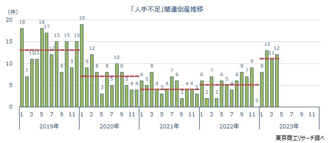 2023年1-4月「人手不足」関連倒産の状況【東京商工リサーチ】